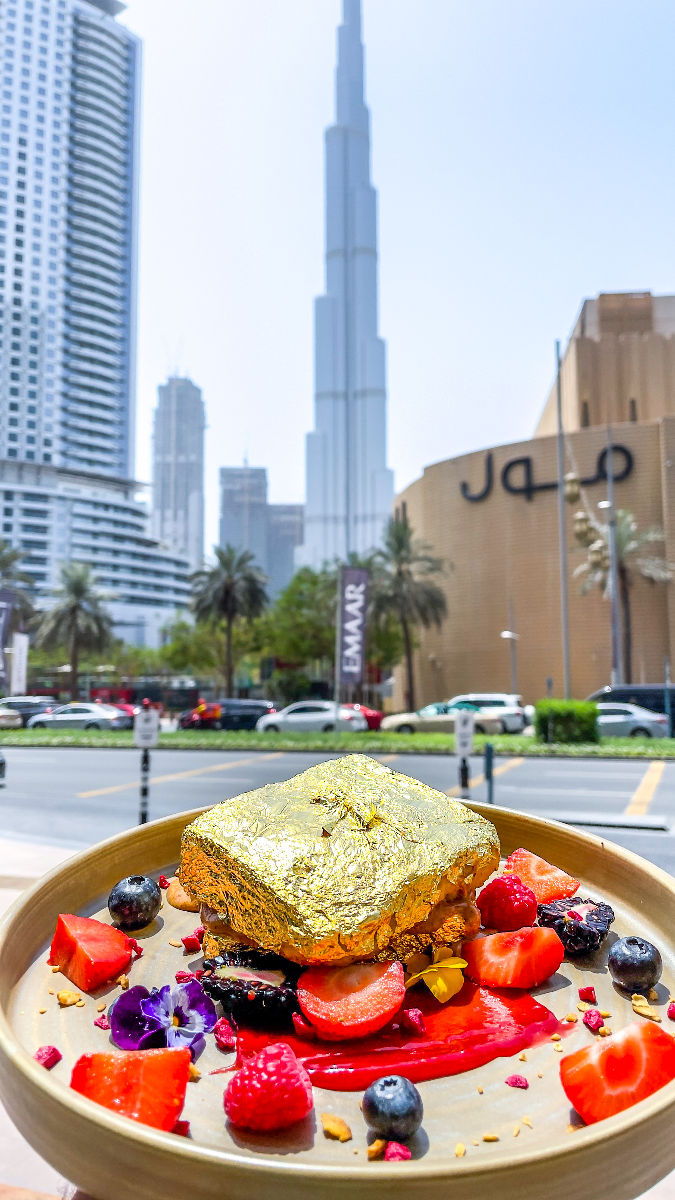 But first of all, what is the Royal Brioche French Toast? Light, fluffy, buttery, freshly-baked brioche is soaked in a tres leches, vanilla beans and saffron mixture, covered with a 24-carat gold leaf and served with white chocolate ganache, strawberries and blackberries. At AED 220, this is a luxurious breakfast dish even Marie Antoinette would approve of.